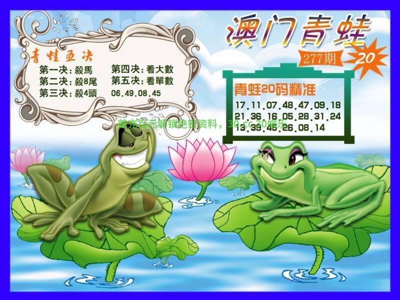 277期:澳门传真: 今期生肖三十开,四下五上是灵码。 三千佳丽住后宫,火中有肖是五七。 风流才子俏佳人,玄机道破点三二。 一语双关话特码,二七美女大家求。 苦不堪言 今期三千佳丽住后宫,解吉美生肖兔龙蛇马羊鸡,火中有肖是五七,解火肖蛇马。 综合:猴虎兔蛇狗猪鸡马羊 主特:10.22.16.28.15.27.25.37.20.32.19.31 |
